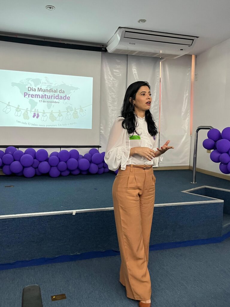A programação contou com uma palestra ministrada pela Psicóloga Obstétrica Lizia Eler, que abordou a importância do suporte emocional às famílias, os desafios da prematuridade e as práticas que contribuem para fortalecer o vínculo entre mãe e bebê durante todo o processo de cuidado.